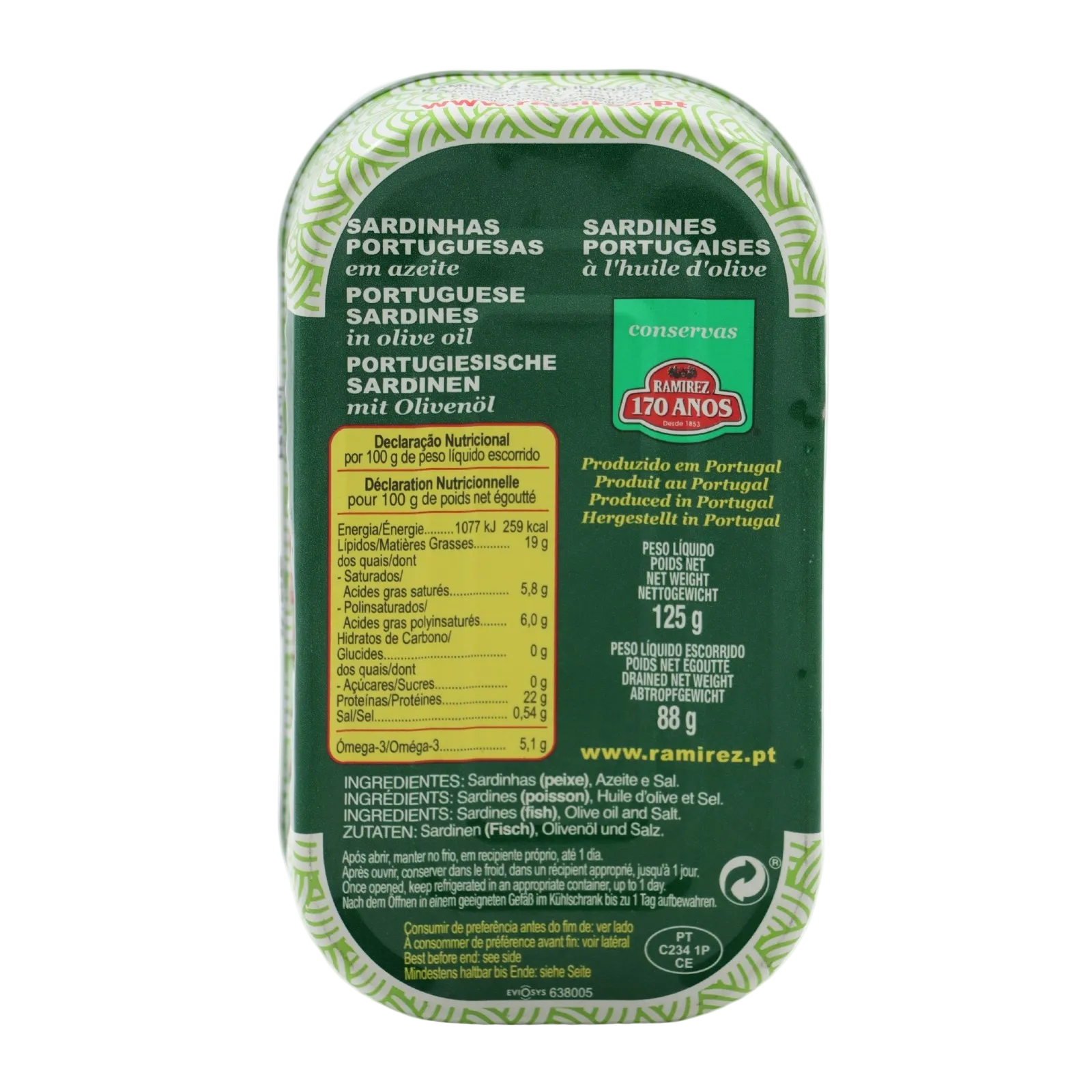 Discover the authentic taste of Portugal with Ramirez Portuguese Sardines in Olive Oil. These premium sardines are carefully selected and preserved in rich, golden olive oil, delivering exceptional flavor and quality in every tin. Perfect for quick meals, appetizers, or traditional Portuguese dishes, they offer a convenient source of omega-3 fatty acids and protein. Whether enjoyed straight from the tin or incorporated into your favorite recipes, these sardines bring genuine Portuguese tradition to your table. A timeless delicacy that transforms any meal into something special.